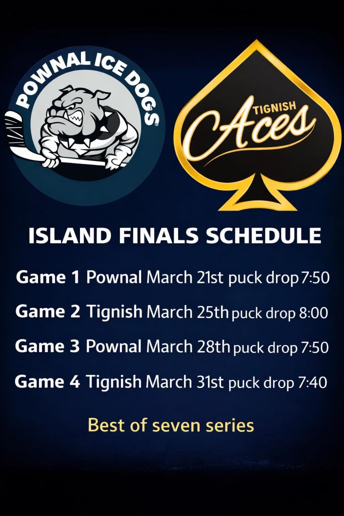 Come out and support the Pownal Ice Dogs as they take on the Tignish Aces in the Island Finals. It’s a best-of-seven series, and there’s plenty of local pride on the line—including players who came up through Pownal Minor Hockey.